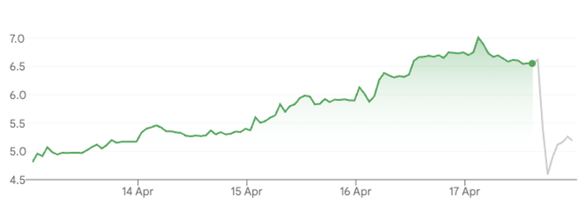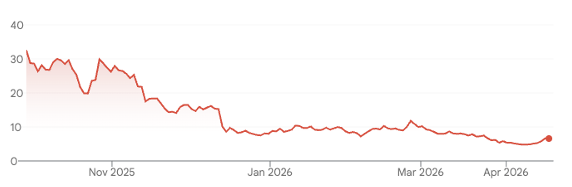 Figure 1. 5 day Fermi share price ($US as at 17 April 2026 ‘aftermarket’)
