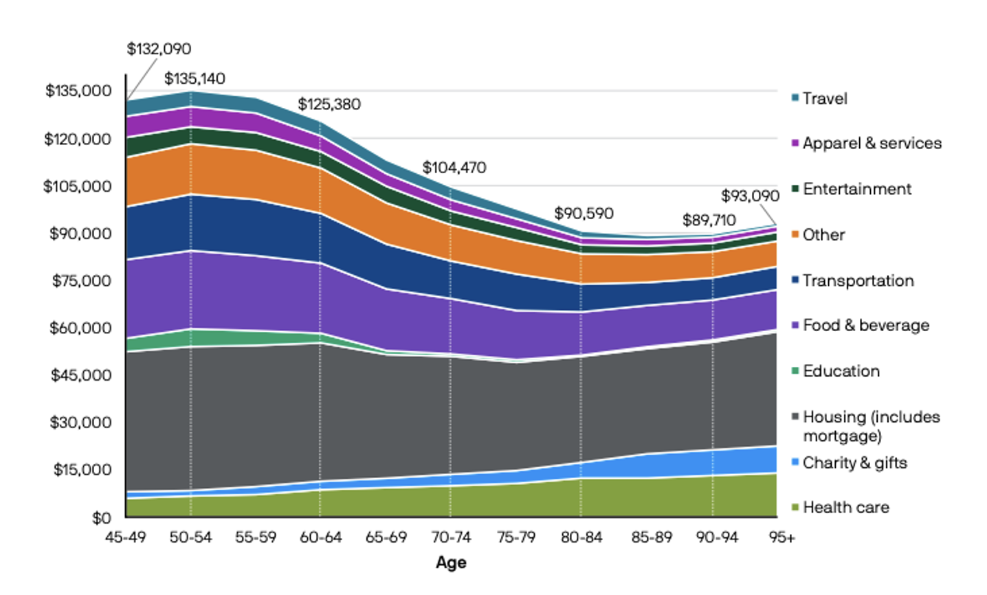 In fact, a 2025 JPMorgan study of retirement found that spending peaks near retirement age and then declines steadily.